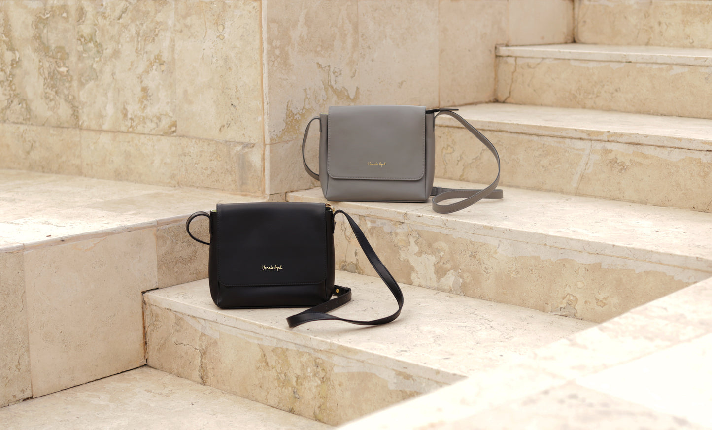 Bolsa bandolera crossbody con cierre metálico y tapa con imánes en tecnocuero napa vegano.
